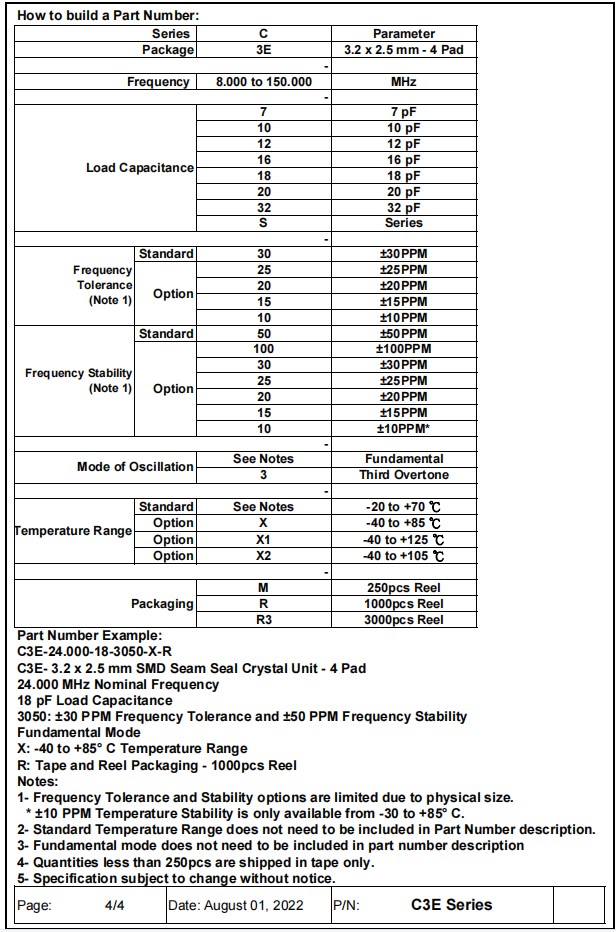 | C3E-12.000-10-1530-X-R | Aker晶振 | Crystal 12MHz ±15ppm (Tol) ±30ppm (Stability) 10pF FUND 100Ohm 4-Pin SMD T/R |