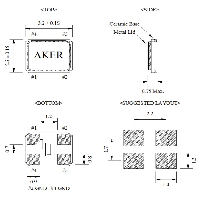 AKER晶體諧振器,C3E-27.000-10-1530-X-R,車載控制器6G晶振,C3E-18.432-10-1530-X-R,藍(lán)牙晶振,尺寸圖
