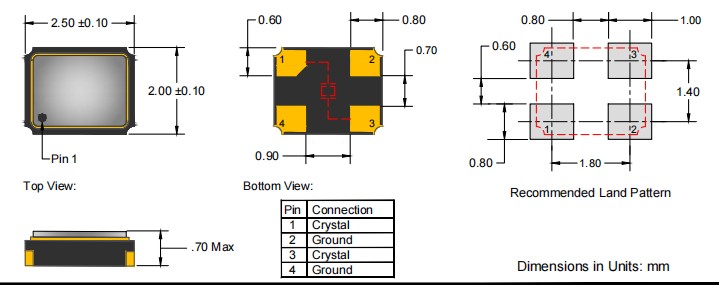 6G無線通信晶振,AE-133-A-2-3060-2-20-16M0000,Anderson超小型晶振,AE133石英晶振,無鉛環保晶振,尺寸圖