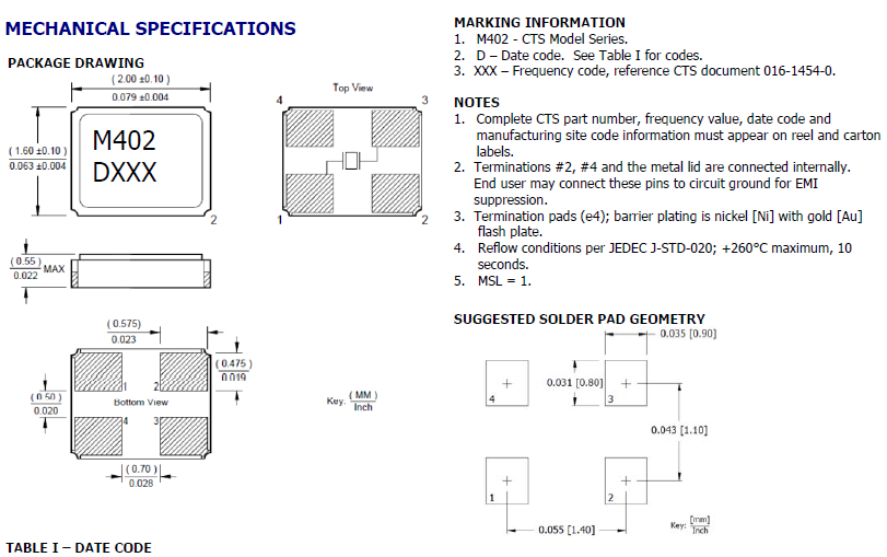 | 402F160XXCJR | CTS Crystal | 402 | MHz Crystal | 16MHz | 4-SMD, No Lead |