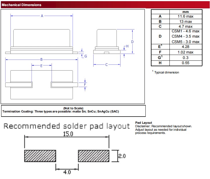 •CSM1-4.6mm;CSM4-3.5mm;CSM5-3.0mm高