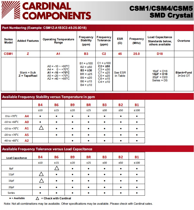 | CSM4Z-A2B3C3-40-14.7456D18 | Cardinal晶振 | CSM4 | 14.7456MHz |