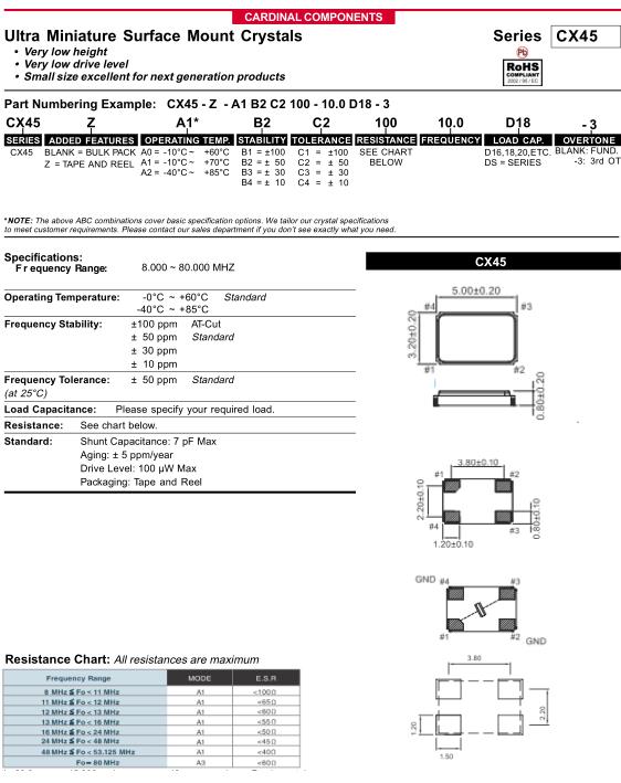 Cardinal晶振,CX45晶振,CX45-Z-A1B2C2100-10.0D183晶振,智能手機(jī)晶振,產(chǎn)品具有高精度超小型的表面貼片型石英晶體振蕩器,最適用于移動(dòng)通信終端的基準(zhǔn)時(shí)鐘等移動(dòng)通信領(lǐng)域.比如智能手機(jī),無線通信,衛(wèi)星導(dǎo)航,平臺(tái)基站等較高端的數(shù)碼產(chǎn)品,晶振本身小型,薄型具備各類移動(dòng)通信的基準(zhǔn)時(shí)鐘源用頻率,貼片晶振具有優(yōu)良的電氣特性,耐環(huán)境性能適用于移動(dòng)通信領(lǐng)域,滿足無鉛焊接的高溫回流溫度曲線要求.