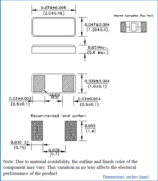 | 頻率溫度特征 | f_tem | ±30 × 10-6/-20°C ~ +70°C | 超出標準的規格請聯系我們. |