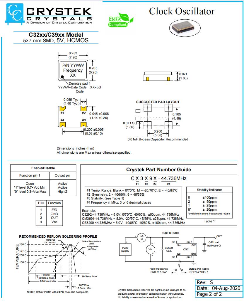 | CE3290-45.000 | Crystek晶振 | C3290 | 45MHz | ±100ppm |