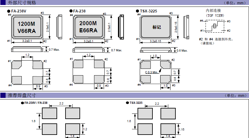 MPU時(shí)鐘專用晶振FA-238,Q22FA23800001,3225mm,12pF,20MHz,±50ppm,尺寸圖