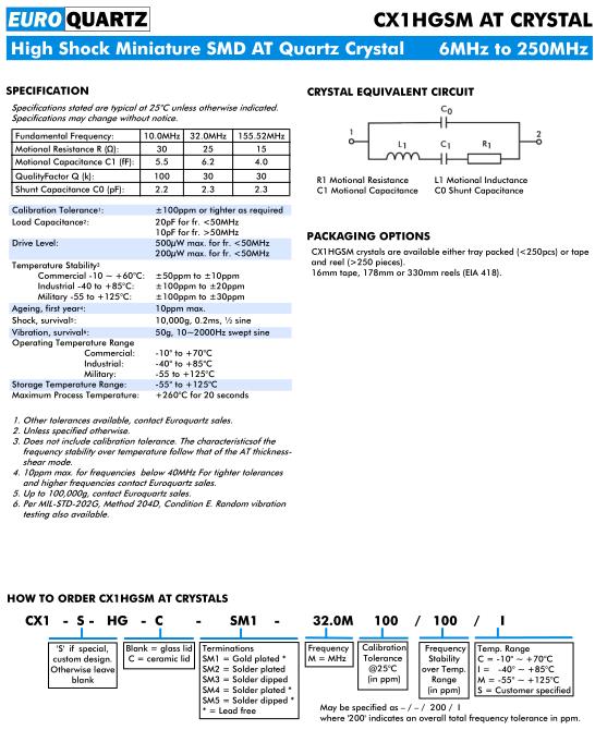 Euroquartz晶振,CX1HGSMAT晶振,CX1SHGCSM1-32.0M100/100/I晶振,貼片晶振本身體積小,超薄型石英晶體振蕩器,特別適用于有目前高速發(fā)展的高端電子數(shù)碼產(chǎn)品,因?yàn)榫д癖旧硇⌒突枨蟮氖袌?chǎng)領(lǐng)域,小型,薄型是對(duì)應(yīng)陶瓷振蕩器(偏差大)和普通的石英晶體振蕩器(偏差小)的中間領(lǐng)域的一種性?xún)r(jià)比較出色的產(chǎn)品.產(chǎn)品廣泛用于筆記本電腦,無(wú)線(xiàn)電話(huà),衛(wèi)星導(dǎo)航SSD,USB,Blu-ray等用途,符合無(wú)鉛焊接的高溫回流焊曲線(xiàn)特性.