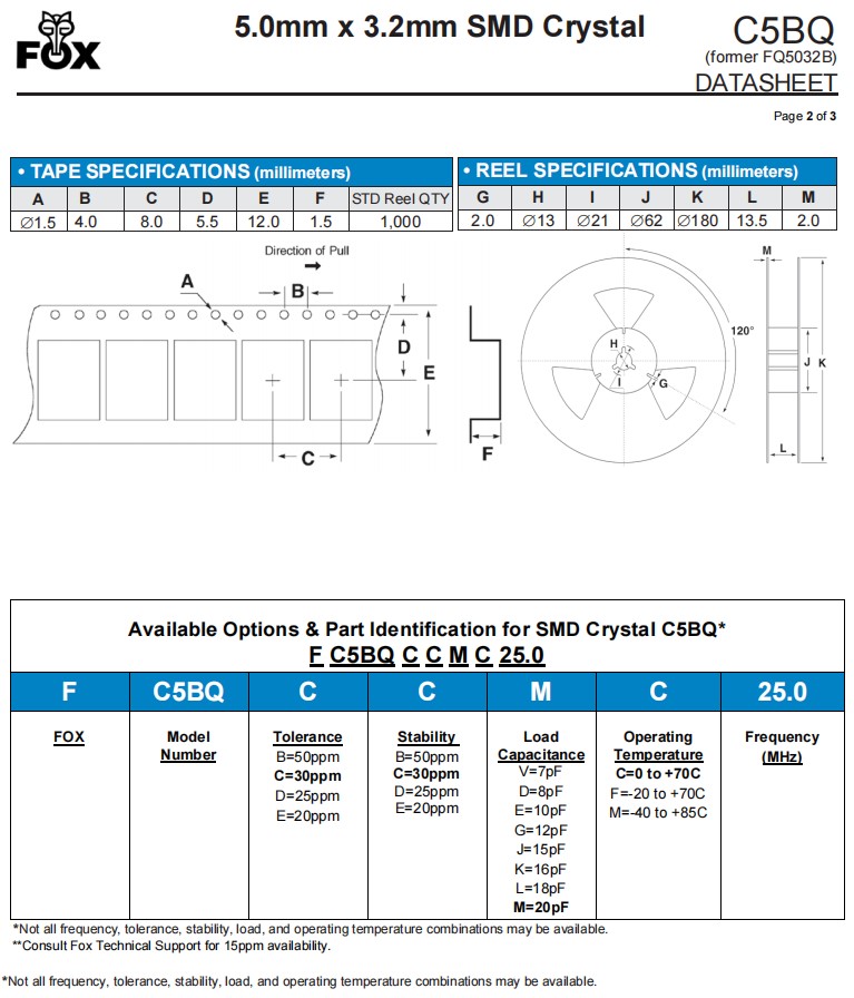 | FQ5032BR-25.000 | Fox晶振 | C5BQ | 25MHz | ±50ppm |