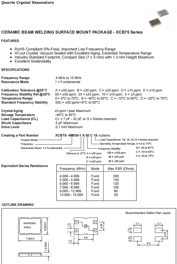 XCB75-7M000-1A50D18,7050mm,Fortiming品牌,7MHz,XCB75,四腳貼片晶振,美國(guó)進(jìn)口晶振,F(xiàn)ortiming晶振,富通晶振,型號(hào):XCB75系列,編碼為:XCB75-7M000-1A50D18,頻率為:7MHz,精度:±50ppm,頻率穩(wěn)定性:±50ppm,工作溫度范圍:-20℃至+70℃,負(fù)載:18pF,小體積晶振尺寸:7.0x5.0x1.3mm封裝,四腳貼片晶振,石英晶振,7050晶振,SMD晶振,無(wú)源晶振,石英晶體諧振器。具有超小型,輕薄型,高性能,卓越的可解性特點(diǎn)。應(yīng)用于:汽車(chē)電子晶振,通訊設(shè)備晶振,無(wú)線網(wǎng)絡(luò)晶振,藍(lán)牙晶振,智能家居晶振,數(shù)碼電子晶振等應(yīng)用。