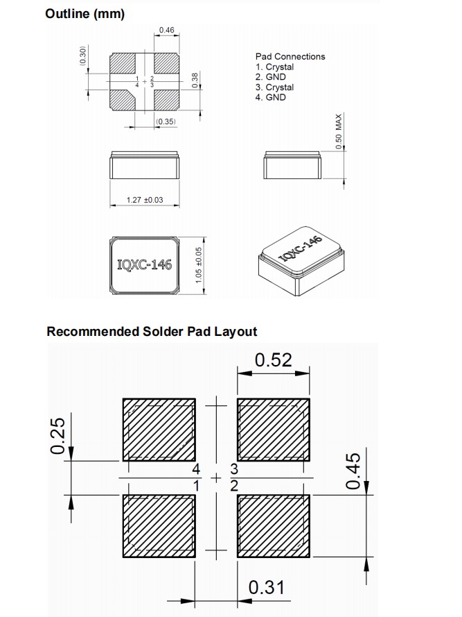 LFXTAL080915,1210mm,IQD無源晶振,32.768KHz晶振,IQXC-146,實時時鐘晶振,尺寸圖