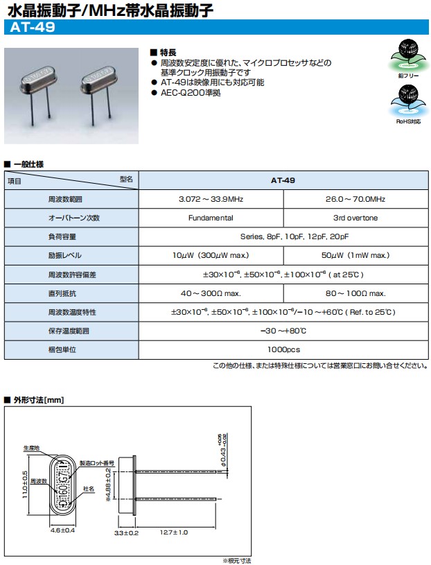 KDS石英晶振,AT-49橢圓型插件晶振,1AY289002DB進(jìn)口晶振,無(wú)源晶振,數(shù)碼電子晶振