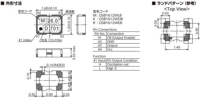 DSB1612WLB溫補晶振,KDS晶振,有源晶振產品本身具有溫度補償作用,高低溫度穩定性:頻率精度高0.5 PPM~2.0 PPM,工作溫度范圍: - 30度~85度,電源電壓:1.8V~3.3V之間可供選擇,產品本身具有溫度電壓控制功能,世界上最薄的晶振封裝.
