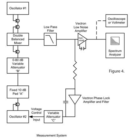 通過將振蕩器機械地調節到相同的頻率,振蕩器被鎖相到正交.當混頻器輸出為0Vdc時,指示兩個石英水晶振動子之間所需的90度相位差.臨時連接到頻譜分析儀的示波器或零中心電壓表是監測正交進度的便捷方式.PLL的工作帶寬必須遠低于感興趣的最低偏移頻率,因為PLL部分地抑制了其帶寬中的相位噪聲.廣泛使用的建立適當環路帶寬的經驗方法是通過衰減器"C"逐步衰減電壓控制反饋.通過在推進衰減器"C"的同時比較感興趣的最低偏移頻率處的連續噪聲測量,可以找到操作點,其中測量的相位噪聲不受衰減器設置的變化的影響.此時,環路帶寬不是測量的相位噪聲的因子.
