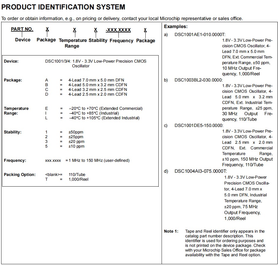 | DSC1003DE1-050.0000T | Microchip晶振 | DSC1003 | 50MHz | 1.8 ~ 3.3V |