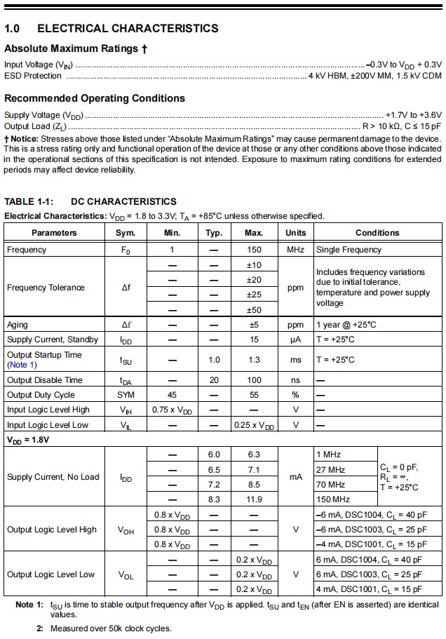 | DSC1003DL2-050.0000 | Microchip晶振 | DSC1003 | 50MHz | 1.8 ~ 3.3V |