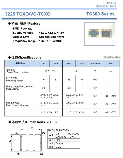 NAKA晶振,TC300晶振,SMD振蕩器,小型SMD有源晶振,從最初超大體積到現(xiàn)在的7050mm,6035mm,5032mm,3225mm,2520mm體積,有著翻天覆地的改變,體積的變小也使產(chǎn)品帶來了更高的穩(wěn)定性能,接縫密封石英晶體振蕩器,精度高,覆蓋頻率范圍寬的特點(diǎn),SMD高速自動(dòng)安裝和高溫回流焊設(shè)計(jì),Optionable待機(jī)輸出三態(tài)輸出功能,電源電壓范圍:1.8V~5V,高穩(wěn)定性,低抖動(dòng),低功耗,主要應(yīng)用領(lǐng)域:無線通訊,高端智能手機(jī),平板筆記本W(wǎng)LAN,藍(lán)牙,數(shù)碼相機(jī),DSL和其他IT產(chǎn)品的晶振應(yīng)用,三態(tài)功能,PC和LCDM等高端數(shù)碼領(lǐng)域,符合RoHS/無鉛.