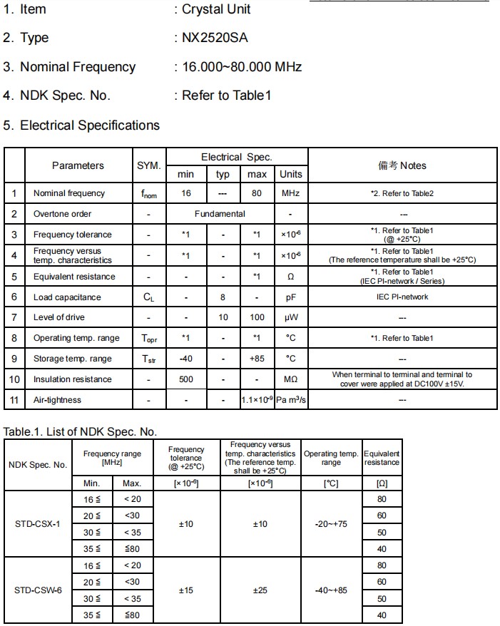 NX2520SA-16MHZ-STD-CSW-5 8pF 2520 16MHz -40℃~+85℃無線設備晶振,參數圖