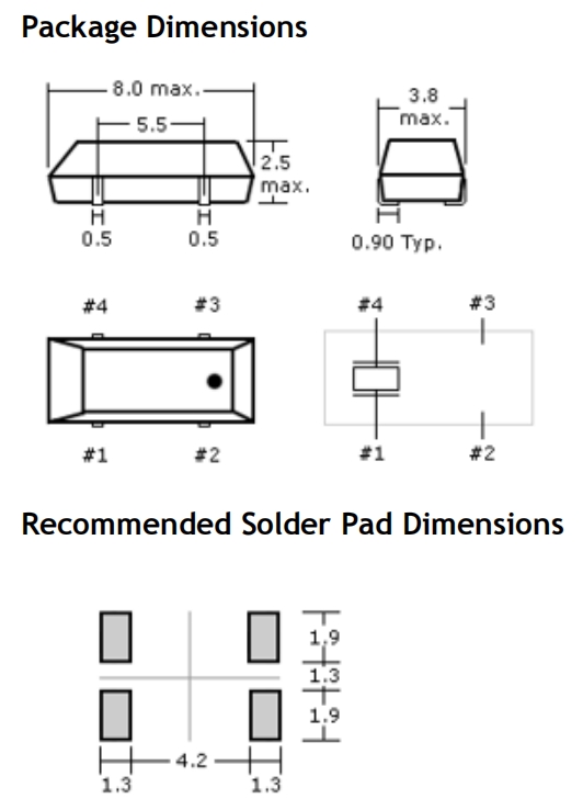 Oscilent陶瓷晶振\223-000312-20\6G時鐘晶振\223音叉晶體 尺寸圖