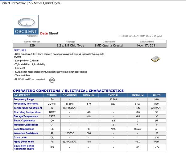 Oscilent晶振,229-32.768K-SR-20-W-TR晶振,貼片晶振本身體積小,超薄型石英晶體振蕩器,特別適用于有目前高速發展的高端電子數碼產品,因為晶振本身小型化需求的市場領域,小型,薄型是對應陶瓷振蕩器(偏差大)和普通的石英晶體振蕩器(偏差小)的中間領域的一種性價比較出色的產品.產品廣泛用于筆記本電腦,無線電話,衛星導航SSD,USB,Blu-ray等用途,符合無鉛焊接的高溫回流焊曲線特性.