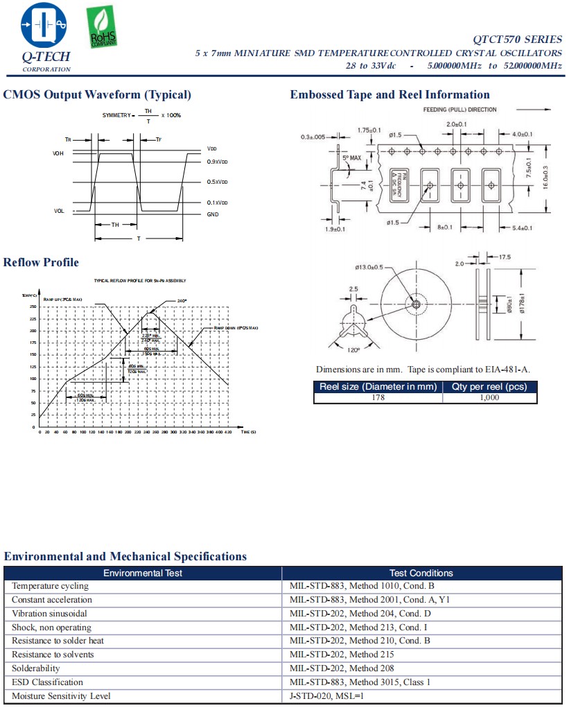 QTCT5703C1T-26.000000,26MHz,7050mm,Q-Tech品牌,QTCT570,TCXO溫補晶振,產品特點: