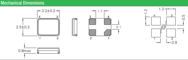 | Frenquency Tolerance at 25°C | ±10 to ±100ppm (±30ppm standard) |