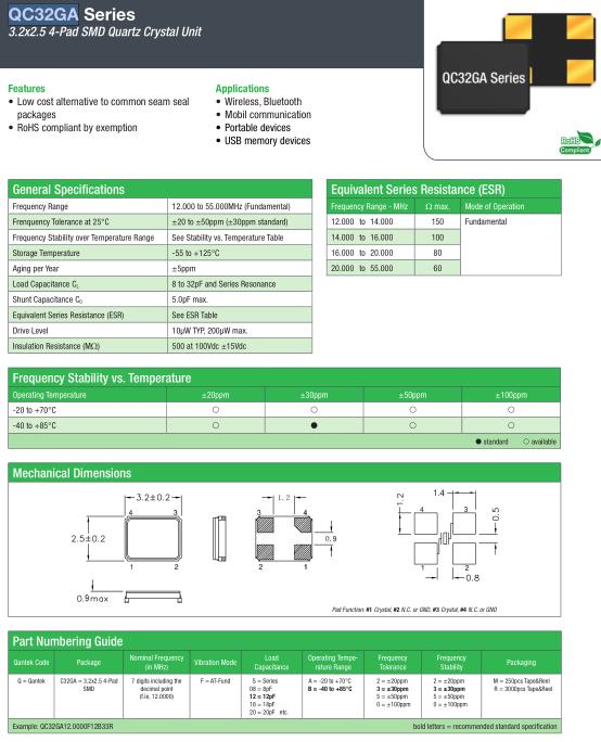 | General Specifications-QANTEK晶振 | QC32GA晶振 |