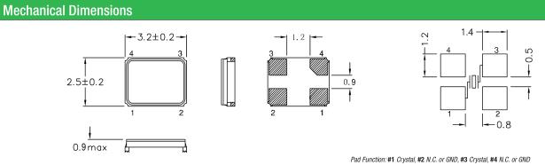 | Frenquency Tolerance at 25°C | ±20 to ±50ppm (±30ppm standard) |