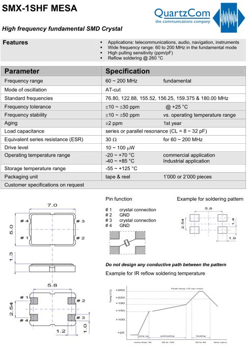 QuartzCom晶振,SMX-1SHF晶振,無源貼片晶振,貼片晶振本身體積小,超薄型石英晶體振蕩器,特別適用于有目前高速發(fā)展的高端電子數(shù)碼產(chǎn)品,因為晶振本身小型化需求的市場領(lǐng)域,小型,薄型是對應(yīng)陶瓷振蕩器(偏差大)和普通的石英晶體振蕩器(偏差小)的中間領(lǐng)域的一種性價比較出色的產(chǎn)品.產(chǎn)品廣泛用于筆記本電腦,無線電話,衛(wèi)星導(dǎo)航SSD,USB,Blu-ray等用途,符合無鉛焊接的高溫回流焊曲線特性.