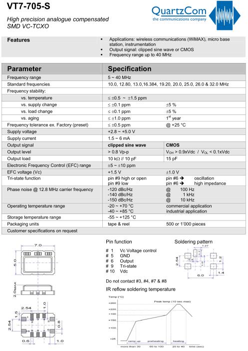 | Standard frequencies | 10.0, 12.80, 13.0,16.384, 19.20, 20.0, 25.0, 26.0 & 32.0 MHz | |