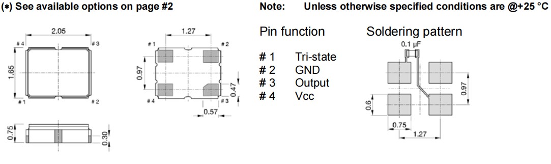 XO20P-H33-NN1u25-100.000MHz,2016mm,QuartzCom有源晶振,低抖動CMOS晶體振蕩器,尺寸圖