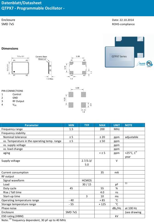 Quarztechnik晶振,QTPX7晶振,高品質晶振,小型SMD有源晶振,從最初超大體積到現在的7050mm,6035mm,5032mm,3225mm,2520mm體積,有著翻天覆地的改變,體積的變小也使產品帶來了更高的穩定性能,接縫密封石英晶體振蕩器,精度高,覆蓋頻率范圍寬的特點,SMD高速自動安裝和高溫回流焊設計,Optionable待機輸出三態輸出功能,電源電壓范圍:1.8V~5V,高穩定性,低抖動,低功耗,主要應用領域:無線通訊,高端智能手機,平板筆記本WLAN,藍牙,數碼相機,DSL和其他IT產品的晶振應用,三態功能,PC和LCDM等高端數碼領域,符合RoHS/無鉛.