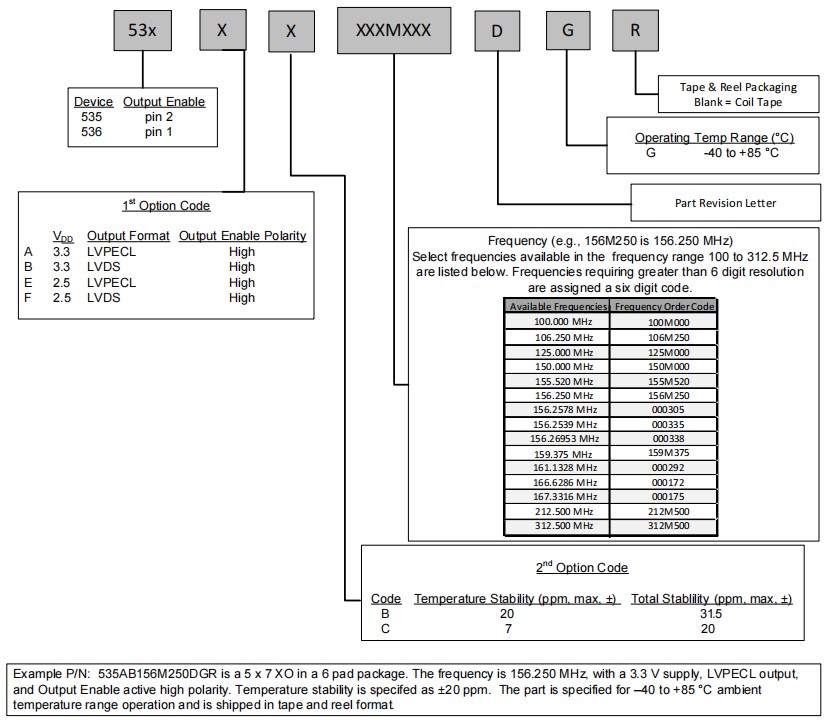 | 536EC000175DG | Skyworks晶振 | Si536 | 167.3316 MHz | LVPECL | 2.5V |