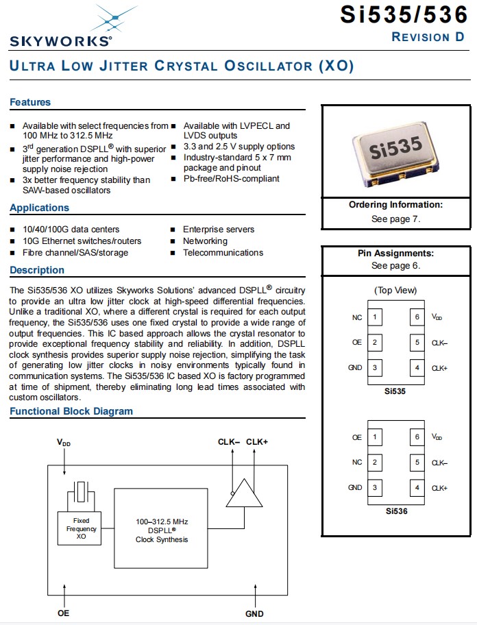 | 536EC000292DG | Skyworks晶振 | Si536 | 161.1328 MHz | LVPECL | 2.5V |