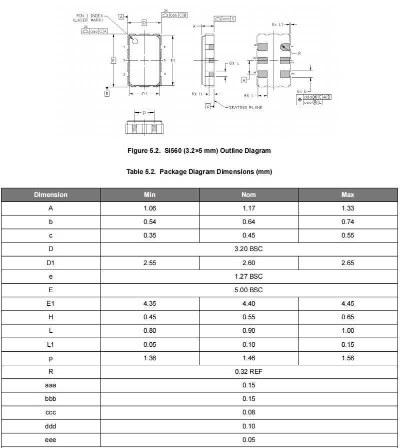Skyworks差分晶振,560BAA125M000BCG,Si560路由器晶振,尺寸圖