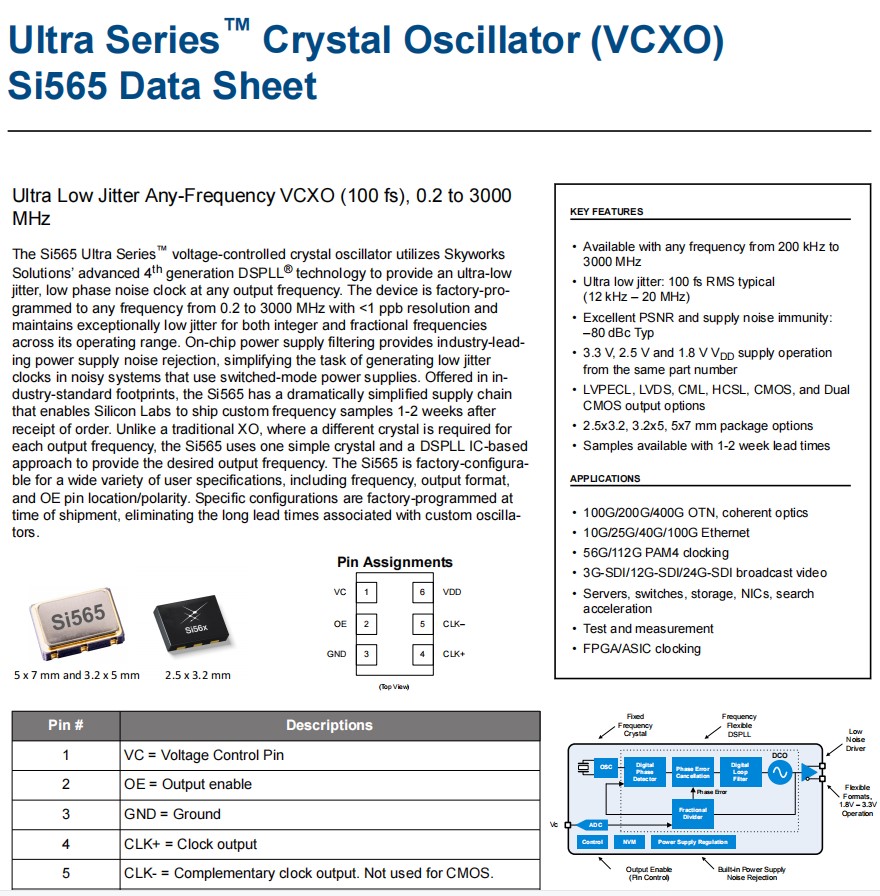 | 565BAA100M000ABG | Skyworks晶振 | Si565 | 100 MHz | LVDS |