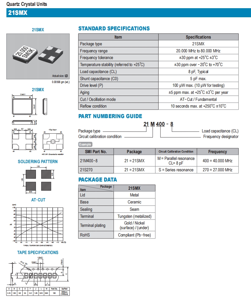 日本SMI晶體\21M250-8\6G無(wú)線晶振\21SMX小體積晶振 參數(shù)表
