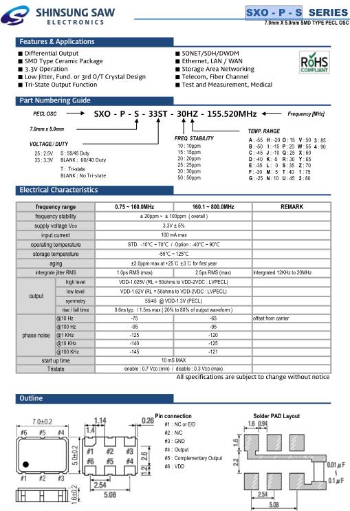 Shinsung晶振,SXO-P-S晶振,SXO-P-S-33ST-30HZ-12.000MHz晶振,小型SMD有源晶振,從最初超大體積到現在的7050mm,6035mm,5032mm,3225mm,2520mm體積,有著翻天覆地的改變,體積的變小也使產品帶來了更高的穩定性能,接縫密封石英晶體振蕩器,精度高,覆蓋頻率范圍寬的特點,SMD高速自動安裝和高溫回流焊設計,Optionable待機輸出三態輸出功能,電源電壓范圍:1.8V~5V,高穩定性,低抖動,低功耗,主要應用領域:無線通訊,高端智能手機,平板筆記本WLAN,藍牙,數碼相機,DSL和其他IT產品的晶振應用,三態功能,PC和LCDM等高端數碼領域,符合RoHS/無鉛.