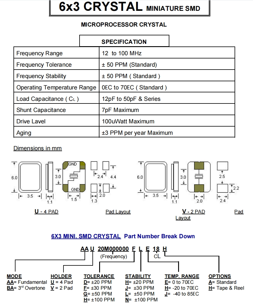 | Frequency Tolerance | ± 50 PPM (Standard) | |||||||||||