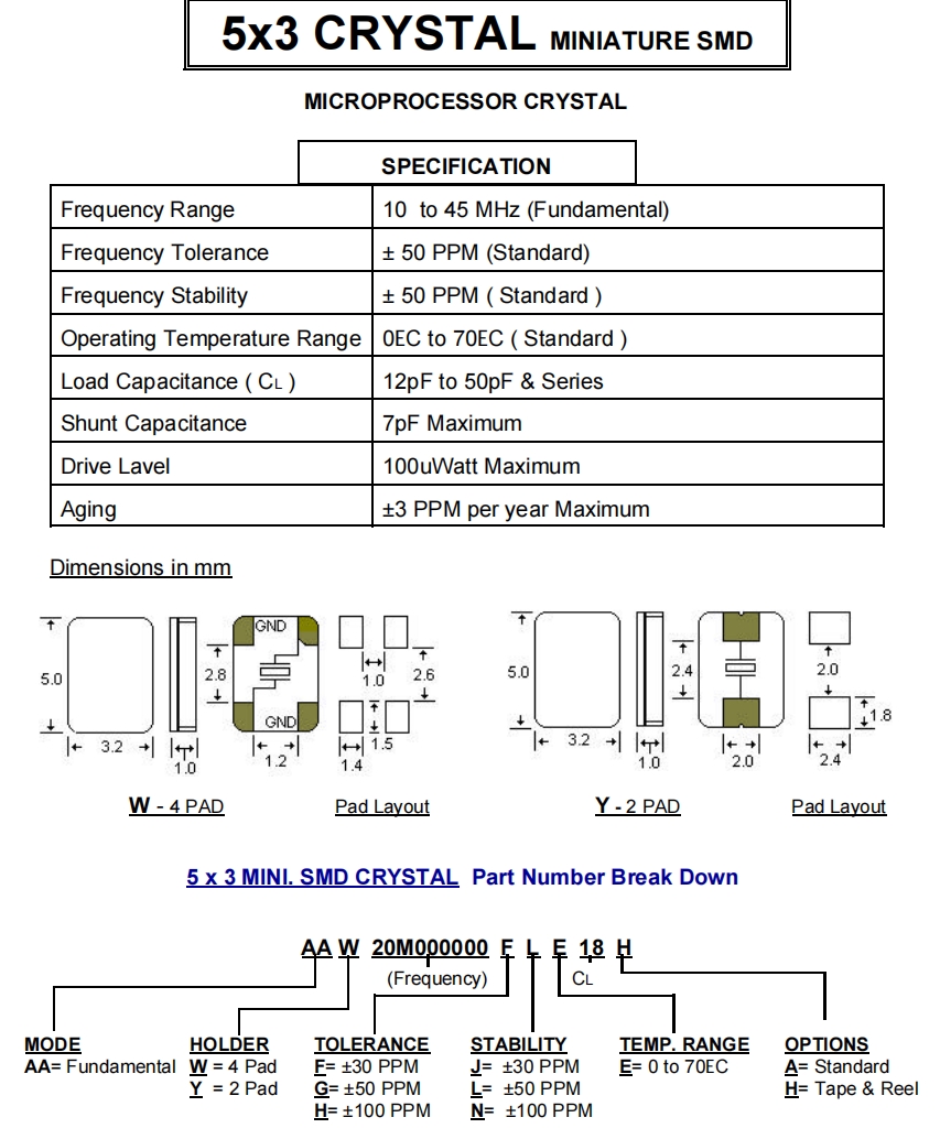 | Frequency Tolerance | ± 50 PPM (Standard) | |||||||||||||||||||||||