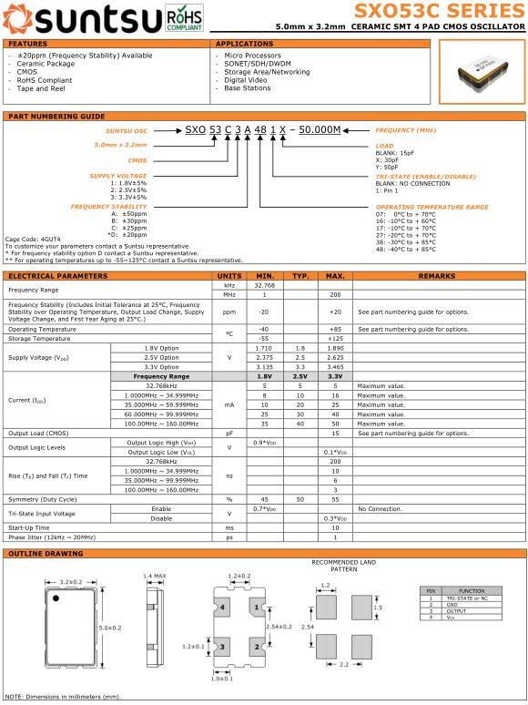 | Output Load (CMOS) | pF | 15 | See part numbering guide for options. | |||