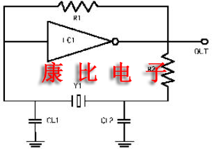 第二種類型的電路是"并聯諧振"電路,如圖4.0所示.您將立即注意到包含兩個電容,稱為CL1和CL2.這些電容器位于貼片晶振外部,具有將諧振頻率提高到高于串聯諧振頻率的效果.特別注意,振蕩器頻率增加而不是晶體頻率.這個頻率通常被稱為"并行"頻率,但實際上這是一個誤稱.該頻率來自包含電容器,應恰當地稱為"負載諧振"頻率.由于電容器將頻率增加到高于串聯諧振頻率的點,因此必須仔細計算和指定它們的值.與串聯諧振電路相比,圖4.0所示的電路在晶體故障時不會繼續振蕩,并且如果需要調整則提供頻率調節手段.所有振蕩器電路都依靠噪聲作為啟動振蕩的手段;并聯電路通過電容器的介質提供額外的噪聲.在使用集成電路的應用中推薦使用所謂的"并聯諧振"電路.