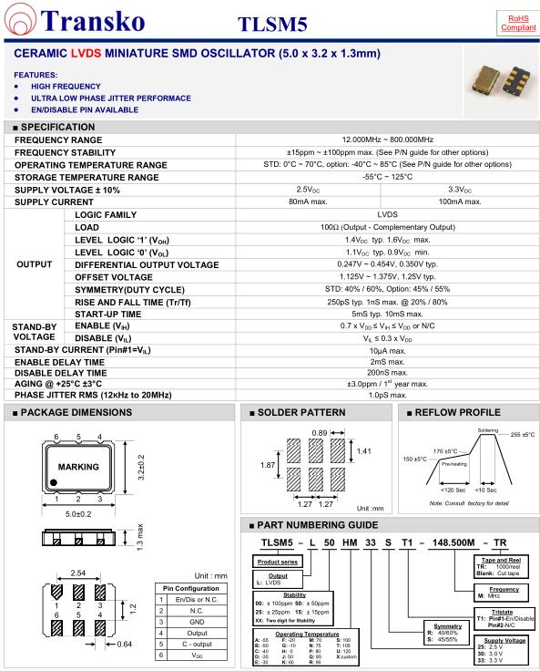 Transko晶振,TLSM5晶振,TLSM5-L50HM33ST1-16.000M-TR晶振,5032mm體積的石英晶體振蕩器,有源晶振,該產品可驅動2.5V的溫補晶振,壓控晶振,VC-TCXO晶體振蕩器產品,電源電壓的低電耗型,編帶包裝方式,可對應自動高速貼片機自動焊接,及IR回流焊接(無鉛對應),為無鉛產品,超小型,質地輕.產品被廣泛應用到集成電路,程控交換系統,無線發射基站.