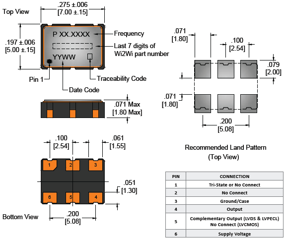 威爾威7050mm晶振,FC7-T-C12000-P-D-D-2-R-X,低抖動晶振,尺寸圖