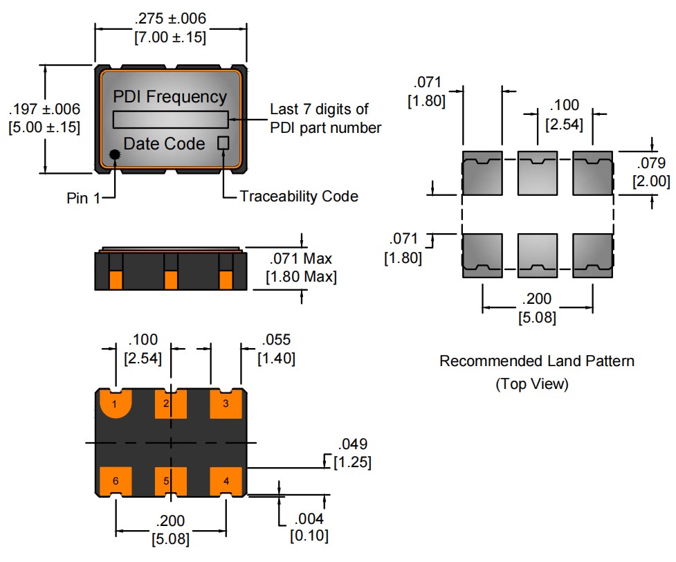 Wi2wi時鐘振蕩器,LV7-T-C10000-M-C-D-3-R-X,以太網(wǎng)晶振,尺寸圖
