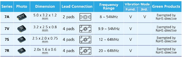 晶振7V,3225無源晶振,TXC水晶振子小型貼片石英晶振主要采用了,先進的晶片的拋光工藝技術,是晶體行業中石英晶片研磨技術中表面處理的最高技術,最終使晶片表面更光潔,平行度及平面度更好,大大的降低諧振電阻,使精度得到了很大的提升.改變了傳統的生產工藝,使產品在各項參數得到了很大的改良.,外觀尺寸具有薄型表面貼片型石英晶體諧振器,"7V-12.000MAAE-T"特別適用于有小型化要求的市場領域,比如智能手機,無線藍牙,平板電腦等電子數碼產品.晶振本身超小型,薄型,重量輕,晶體具有優良的耐環境特性,如耐熱性,耐沖擊性,在辦公自動化,家電相關電器領域及Bluetooth,Wireless LAN等短距離無線通信領域可發揮優良的電氣特性,滿足無鉛焊接的回流溫度曲線要求.