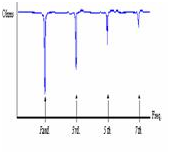 7-1.請確定使用頻譜分析儀機中斷信號的頻率.我們可以發現存在的問題是根據頻率什么.