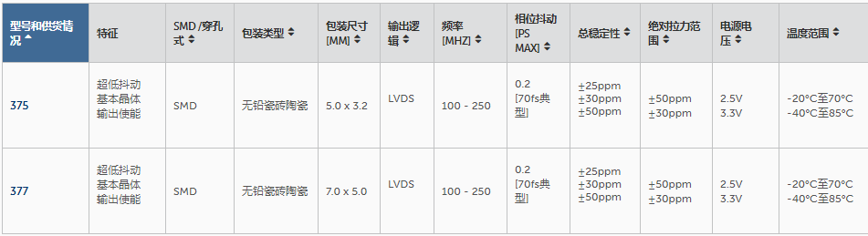 更多>>美國西迪斯LVDS輸出代碼系列之375LB6C2000T晶振