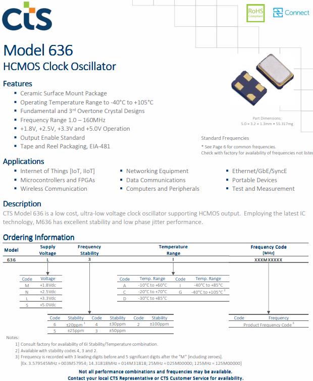| 636M3I028M63636 | CTS振蕩器 | 636 | 28.63636MHz | ±50ppm |