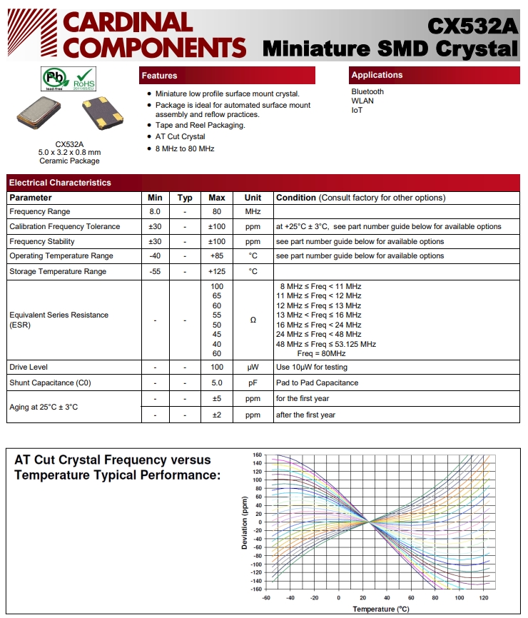 | CX532Z-A2B3C5-70-8.0D18 | Cardinal晶振 | CRYSTAL 8.0000MHZ 18PF SMD | CX532 | 8MHz | ±30ppm | -40°C ~ 85°C |