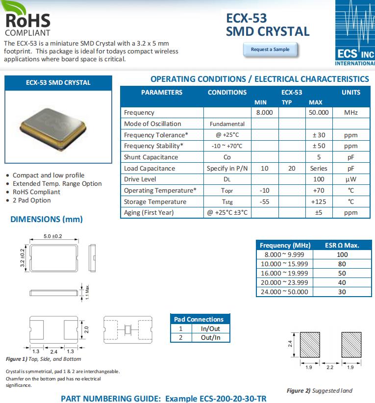 | ECS-250-18-30-JEM-TR | ECS晶振 | ECX-53 | 25MHz | -20°C ~ 70°C |